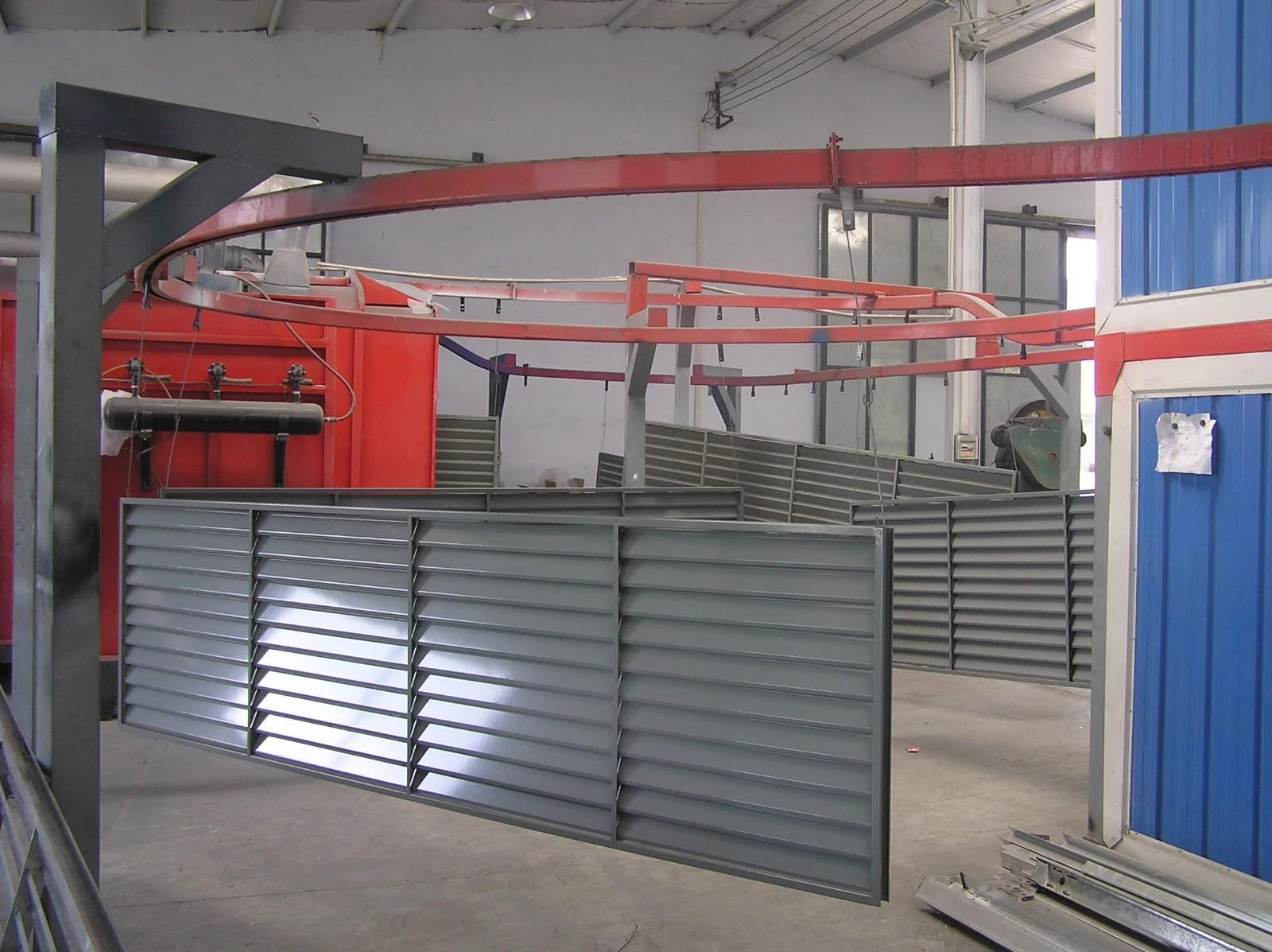 噴涂中的百葉窗,顏色可根據客戶定制,訂購熱線:13838263999